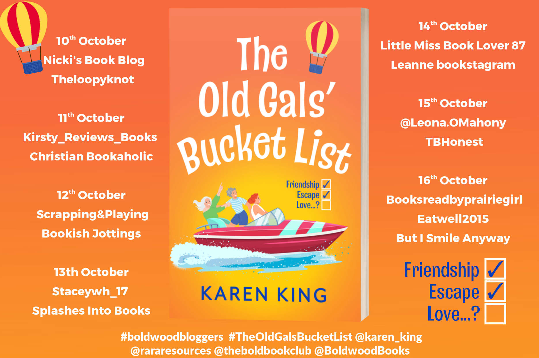 The Old Gal’s Bucket List by Karen King #BookTour #Blog Tour @karen_king @rararesources @BoldwoodBooks