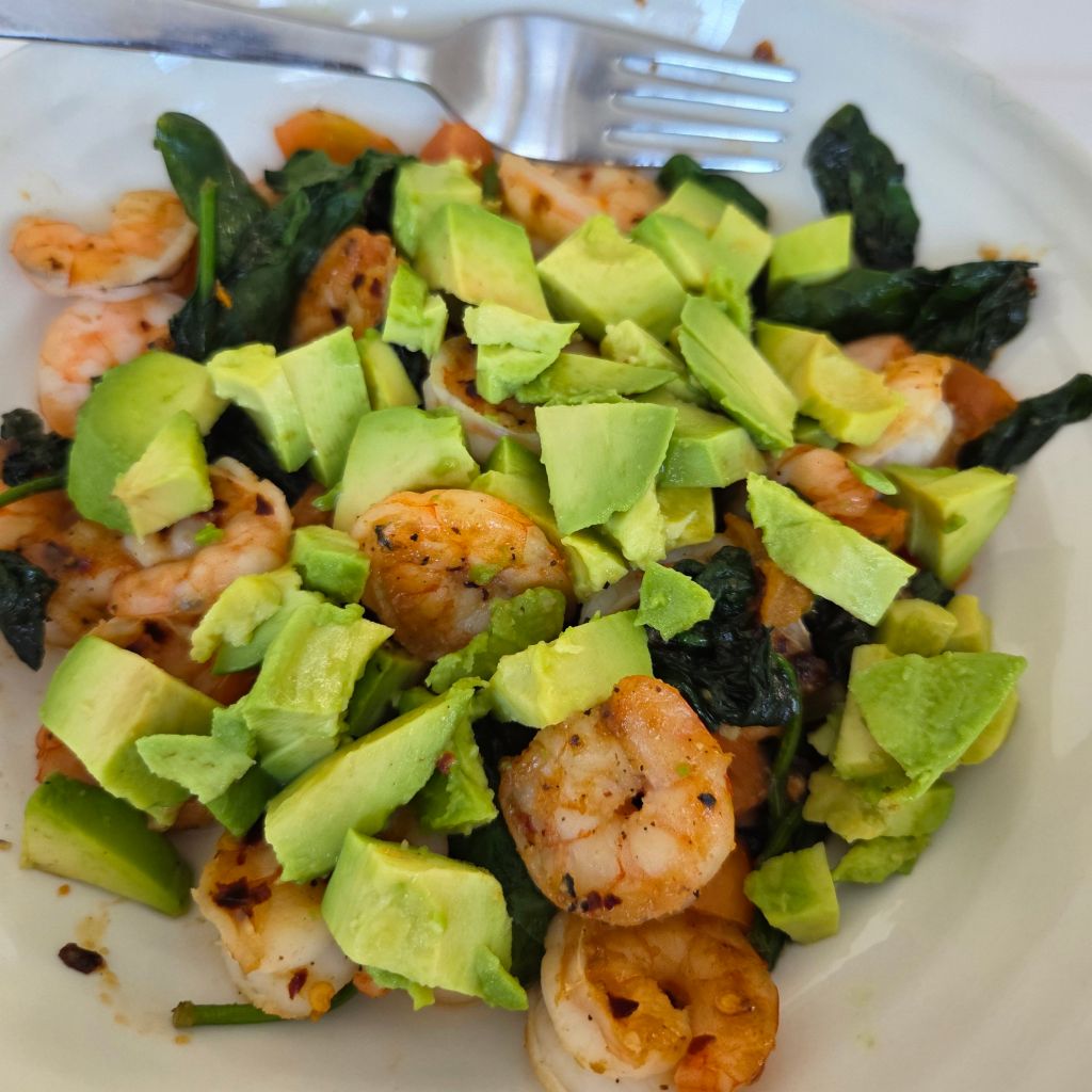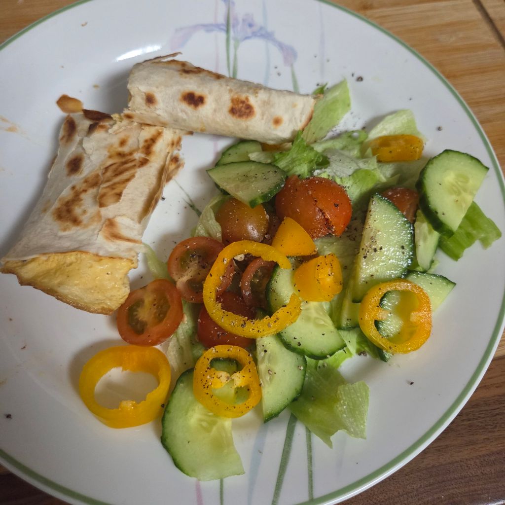 I’m eating three good meals a day, drinking more water, and snacking less. I’ve refused the takeaway that Hubby Dearest wants to order on most occasions, trying to cook from scratch more.